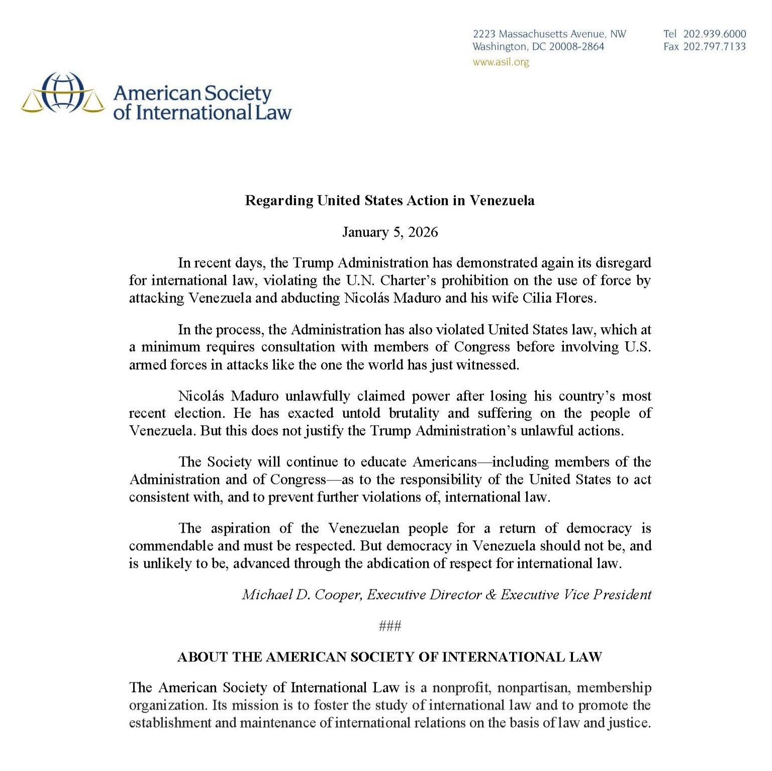 Je vous propose l'acte d'accusation de 25 pages concernant Nicolas Maduro et son épouse. Quelques précisions sur Barry J. Pollack, l'avocat en charge du dossier (pour le moment) et du juge fédéral Alvin Hellerstein, âgé de 92 ans. Plus, la déclaration écrite de l'ASIL (American Society International Law) qui condamne Absolute Resolve.