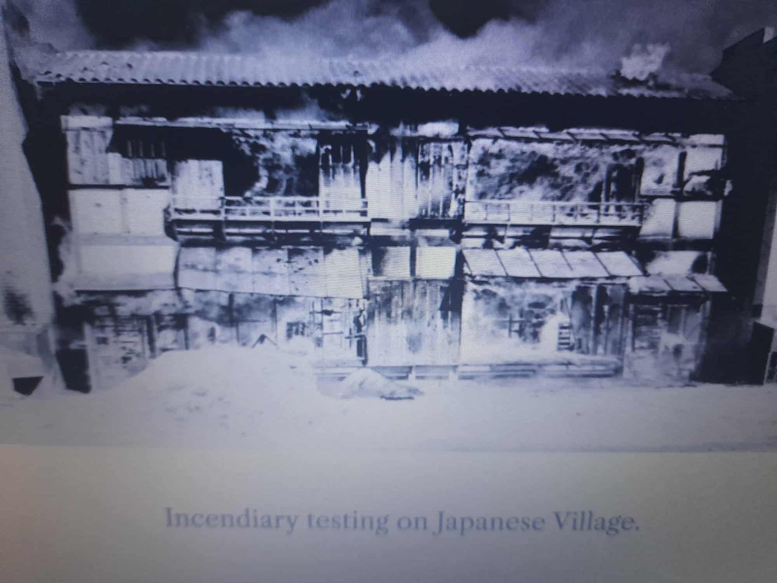 Les ennemis, l’Allemagne et le Japon. L’armée américaine construit alors des répliques en grandeur nature de maisons allemandes et japonaises. Les architectes allemands Eric Mendelson (1887-1953) et Konrad Wachsmann (1901-1980) dessinent différentes maisons, celles de Rhénanie, d’Allemagne du nord, du centre. Il faut une bombe capable d’enflammer les matériaux utilisés par les Allemands. Mais comment les trouver en pleine guerre ? Le bois vient de Mourmansk. L’architecte tchèque Antonin Raymond, de son vrai nom, Reimann, (1888-1976), connaissant le Japon, s’occupe des répliques des maisons japonaises. Le Russe Boris Georgievich Laiming (1897-1981), vient en renfort. Il a connu le pire le 1er septembre 1923. Un tremblement de terre de magnitude 7,9, suivi d’un raz de marée et d’un incendie, détruisant presque totalement l’agglomération de Tokyo-Yokohama et la province du Kanto, au centre du Japon. 105 000 victimes, dont 87 % par le feu. Il faut aussi trouver des matériaux équivalents aux matériaux japonais. Rien n’est laissé au hasard. Sont reconstituées les conditions de vie d’une famille ouvrière moyenne tant allemande que japonaise. Deux employés de la division authenticité des studios RKO, à Hollywood, ayant travaillé sur les décors du film "les enfants de Hitler", arrivent. "Les enfants de Hitler", un film réalisé par Edward Dmytryk en 1943, d’après le livre "Education for death, the making of the nazi", de Gregor Ziemer Athalwin. Livre cité au procès de Nuremberg tenu du 20 novembre 1945 au 1ᵉʳ octobre 1946.