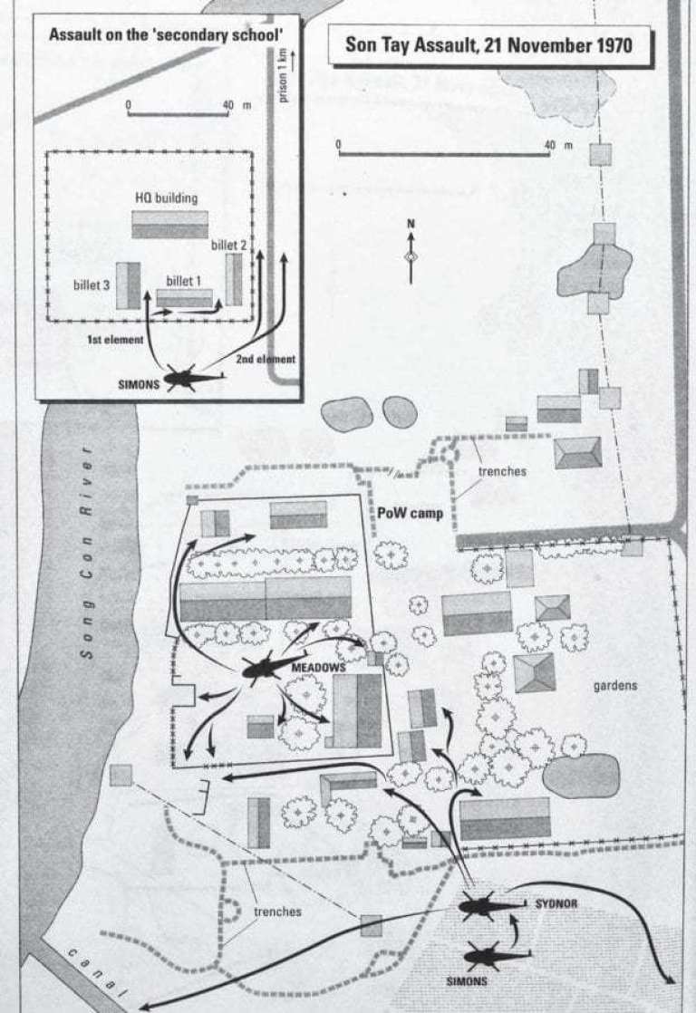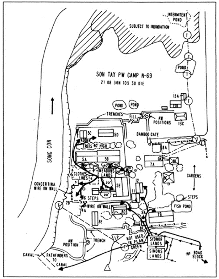 Map of movements during the Son Tay assault. Image credit: MAP FROM ‘LEAVE NO MAN BEHIND’, COPYRIGHT DAVID ISBY. Caption: Defensemedianetwork.com